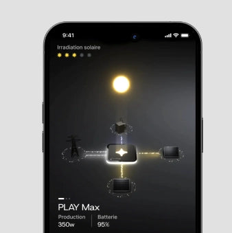 Le système Sunology PLAY Max exploite l'énergie solaire grâce à son panneau solaire intégré. Cette énergie est ensuite convertie en électricité pour alimenter votre maison en temps réel. L'innovation réside dans sa capacité à stocker l'énergie excédentaire dans sa batterie, offrant ainsi une source d'alimentation fiable et durable, même pendant les périodes de faible luminosité et la nuit.