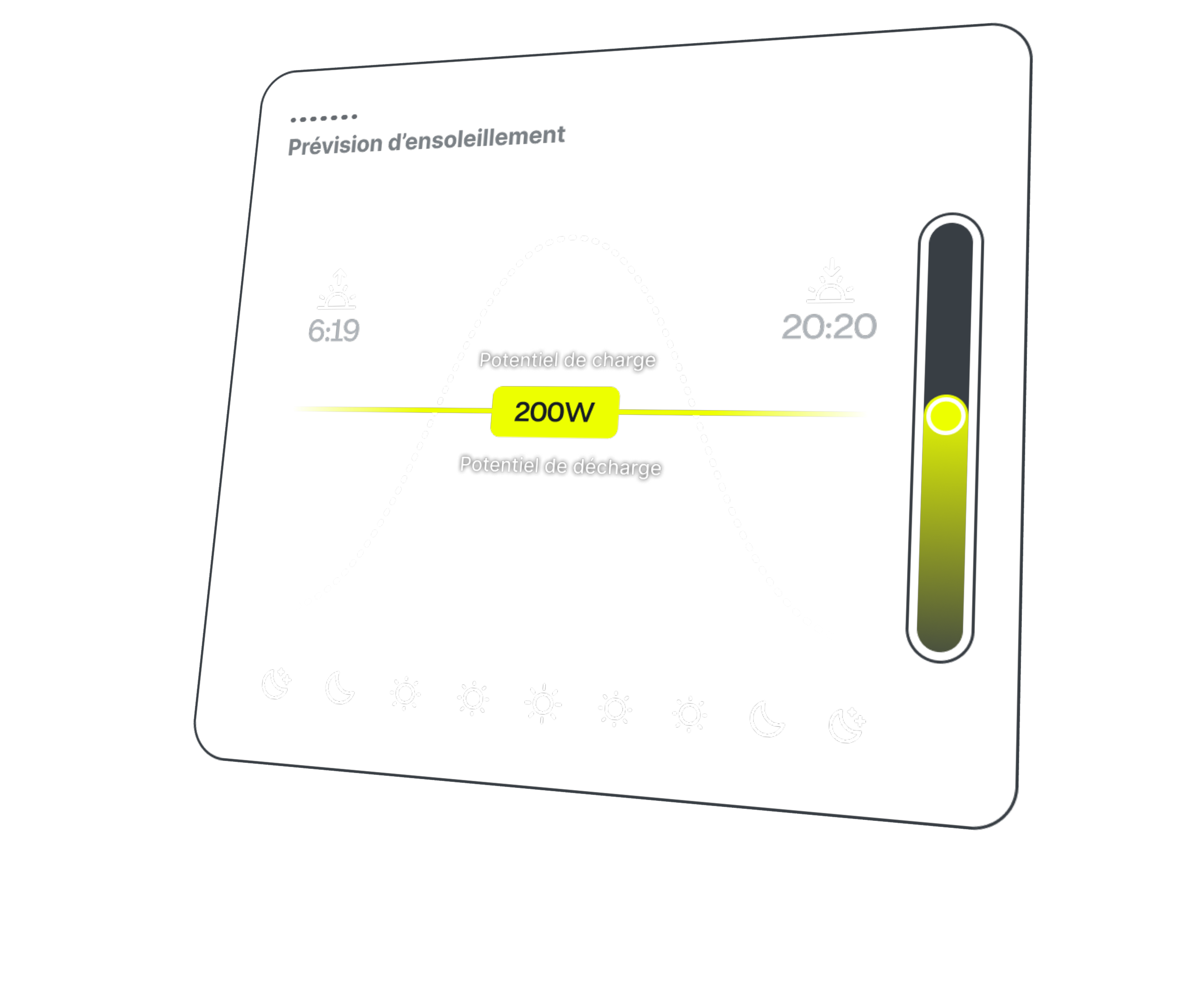 Grâce à notre algorithme de prévision d’ensoleillement géo-localisé à 48h, le seuil charge et décharge de votre batterie STOREY est automatiquement calculé.