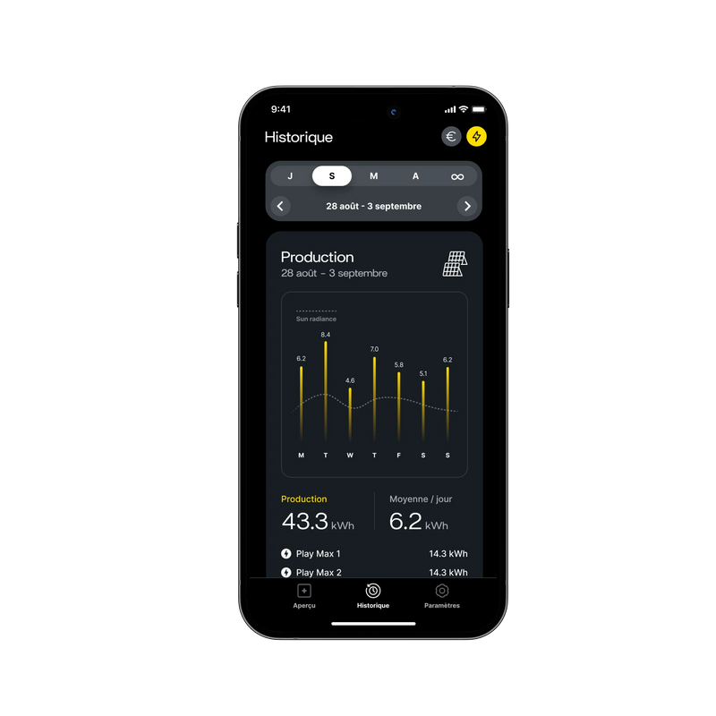 À tout moment, même à distance, visualisez les infos essentielles sur les performances de votre station solaire CITY avec notre application STREAM.